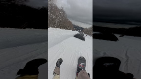 Occurred on / Info: A snowboarder sprays kids with powdered snow as he passes them on the trail. Credit: IG/@halfcabking