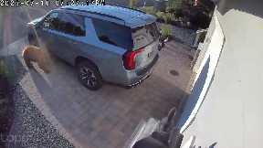 Info from Licensor: "My driveway security camera caught me running out to pose for the street view car on Thursday. I was upstairs doing some work in my bedroom when I saw a car I didn't recognize heading down my street. I went to the window and saw it was the Google Street View car! My street ends in a cul-de-sac so I knew it would be coming back shortly. I ran downstairs and jumped on my car. I didn't have much time so I was still in my socks!"