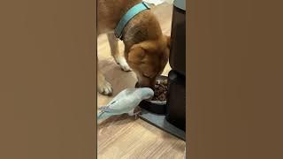 Pup Shares Food With Parrot