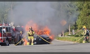 Occurred on / Moscow, Russia Info: "A Mercedes catches fire and suddenly drives away. Credit: Artem O."