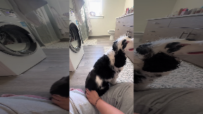 Info from Licensor: "Myla, our chocolate and tan show cocker spaniel, was eating an ice cube. The ice cube slipped and stuck to the bottom of her mouth, which caused her to lose sight of it and look around completely confused as if some magic had just happened."