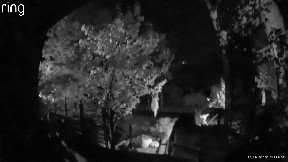 Info from Licensor: "My Ring camera caught this footage of a raccoon in my backyard. It happened around 11:30 PM at night. It shows a raccoon walking to my door mat, scratching his feet on it, and then turning back around and walking away."
