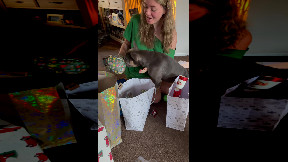 Frenchie Super Excited for His Christmas Gift
