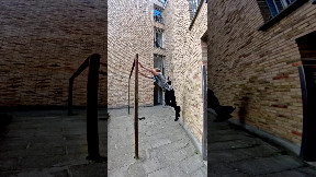 Info from Licensor: "In the video me (Or Miniely) is hanging on a bar at one of the fitness sections in Tel Aviv beach, preforming “skin the cat” while dislocating both shoulders to be able to continue another half a flip, then returning all the way back.