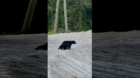 Info from Licensor: "A black bear was casually walking along our beachfront, which is highly unusual in Watertown, SD. Ziva, my 28 lb Brittany, had never seen any creature like this before and attempted to take on this 200lb intruder that was on our property. Even before getting my phone out or starting to record, I could tell that the bear was not interested, non-threatening, and just a little confused why this dog was freaking out so much. I personally approached, standing and yelling within 30 feet from the bear. Ziva got too close and tumbled once (not in video) because the bear responded playfully, no aggressive swiping. The bear calmly walked away. No animals or people were harmed during this encounter."