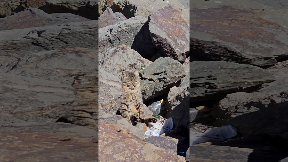 Kitten Sunbathes at the Beach
