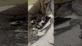 Mud Loving Doggy Relaxes in Sloppy Ditch
