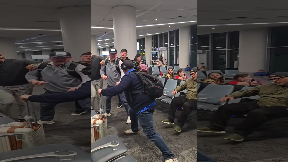 Occurred on August 8, 2025 / Info from Licensor: "Man spent a whole 8 hour flight with his hands on the back on the chairs in front to stop them reclining."