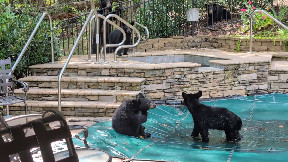Mama Bear and Her Cubs Playing in Porch Kiddie Pool