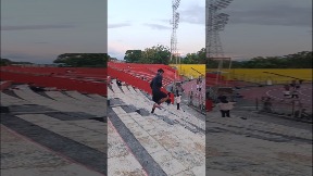 Man Tumbles Down Stadium Stairs While Exercising in Padang, Indonesia