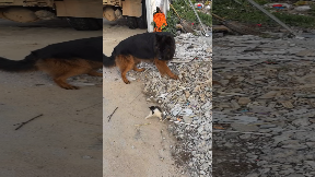 Kitten fighting with German Shepherd