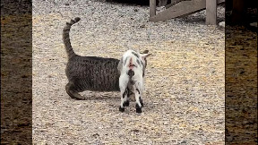 Cat and Baby Goat Have an Adorable Friendship