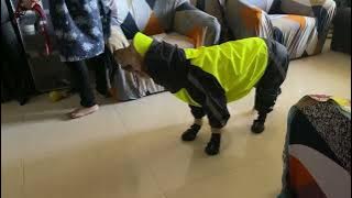 Golden Gets Suited For Rainy Walk
