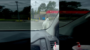 Info from Licensor: "I take my turkey, Goosington III aka Goose, every Friday to get breakfast at a fast food restaurant. We sit and share (that term is used very loosely) the meal! I am attempting to teach him manners and boundaries all while fighting for my life. Nothing can get between Goose and his hash browns. Credit: Brandi Brandon"
