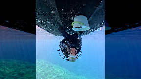 Diver Cleans the Underside of a Boat