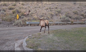 Info from Licensor: "Girl walking her dog is chased by a moose early morning. The girl runs to our yard yelling and pulling her leashed dog trying to get help, luckily we were home to let her in. Credit: Manny Torres"