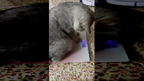 Info from Licensor: "In this video you see my Fiancé and our kitten, Mint. Over the past few days our kitten has been wanting to jump onto the counter. We're against the idea of pets walking on kitchen counters so we've been redirecting. You see my fiancé blocking Mint from jumping onto the counter. Mint being stubborn and determined, he does not care about an arm being there to stop him. Mint proceeds to jump from the armrest to the kitchen counter, landing face first into the wall then dropping down onto the floor. After another failed attempt, Mint and my fiancé proceed to have a back and forth. Credit: Tori L. Edwards"