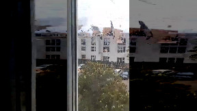 Info from Licensor: "Neighbors tree fell and slammed into our home while my girls and I were inside, causing chaos and fear in seconds. This footage captures the shocking moment of terror. Credit: Morgan Leaf"