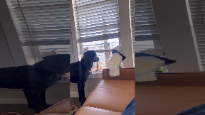 Info from Licensor: "This video includes me( Tyreke) and my dog Shadow on a super cold Thursday night. I hadn’t planned on making the video since I was suffering from a stomach illness that I picked up recently, but shadow seemed so elated this with a goofy face and it’d already matched our current content so I decide it would be the perfect video. He enjoyed lots of treats afterwards! Credit: Tyreke Williams"
