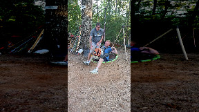 Guys Create Human Wheel of Fire With Playground Equipment