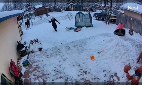 I knew I needed to get Iggy inside and stay as calm as possible. The moose in the video is the mother moose. The adolescent moose was about 15 feet to the left. You can’t see it in the footage. Credit: Sharena Gregor"