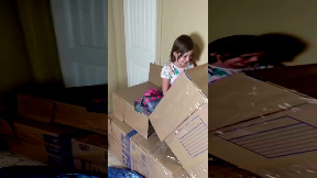 Stairs Turned Into Cardboard Box Slide