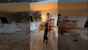 Doberman Puppy Accidentally Tackles Child During Balloon Play