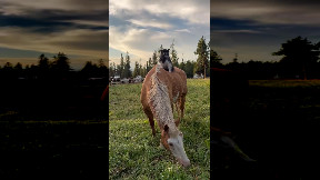 Occurred on April 1, 2021 / Neenah, Wisconsin, USA Info from Licensor: "Carl the farm dog saves pizza for later. Credit: @k80luckystables"