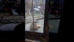 Info from Licensor: "A 6yr old orangutan descended down a rope onto the feeding station, where food had been left. He picked up a small bunch of bananas in one hand, then proceeded to pick up a massive bunch of bananas with the other hand. He sneaked off to the edge of the platform with a stealth-like walk (much like a mischievous child) before eating them. Credit: Judith Teall"