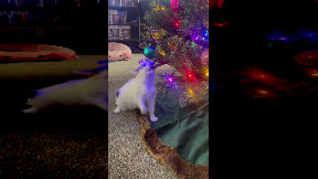 Cat Named Freddie Mercury Climbs Christmas Tree