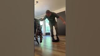 Man Pilots Walking Robot Across Pedestrian Crossing