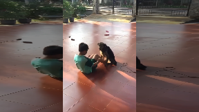 Info from Licensor: "Murphy is a rescue dog that our family intended to foster, nearly 5 years ago. Turns out, he has an excitement for box trucks. He knows when the trucks go past our house and races to the fence to wait for them to come back after they deliver to the house at the end of the road. He listens and starts spinning with excitement when they come around the curve. Credit: Heather Pigman"