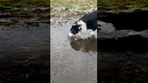 Dog Enjoys Biting Through Iced Over Puddles