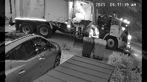 Info from Licensor: "This was taken at an International mechanic shop on the airbase in Houma, Louisiana around 4:00pm. A Fedex truck was being dropped off to get maintenance work done and offloaded packages to a U-Haul truck. They use U-Haul trucks when they need other sources of transportation for deliveries. The man in the video seems to be off duty but he is an actual FedEx employee, just not in uniform."