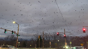 Info from Licensor: "While I was trying to focus my camera on the sunrise a flock of black birds kept creeping into my view. Then they started crowing as more and more birds started to come into the flock. Eventually the flock grew to where I was completely distracted from the sunrise. I was mesmerized by their display and rhythmic pattern. Now I only wished I had kept videoing longer."