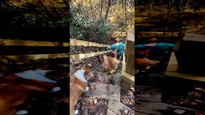 Info from Licensor: "In February 2021, a woman was training her dog in a Toronto ravine. A coyote watched from a distance, blocking their path from the woods. When the dog played, the coyote became more animated, and behaved as if wanting to engage. The woman yells "go away" every time the coyote approaches. There is a pattern of approach and retreat, with what looks like play behavior. The woman slowly leaves the area with her dog on a leash. The coyote stops at the main trail and watches as the woman and dog leave. Most of the footage is of the coyote."