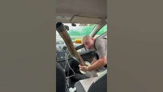 Info from Licensor: "One of my employees is working in the office when there were 2 vehicles trying to avoid a collision, which sent a giant bar of steel directly into my shop and broke the glass door. Luckily, the man is fine."