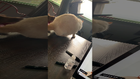 Info from Licensor: "My girlfriend was screaming my puppy's name. I was in the bathroom, so I opened the door to see what she was doing; It was there that I saw her pulling her cat sister by her sweater to take her with her, while she remained still and let herself be taken. I opened my camera to capture the moment."