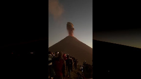 Info from Licensor: "This video was taken of Volcan de Fuego from base camp on Volcan Acatenango in Guatemala. We hiked 8 miles total with over 8,000 ft elevation gain between the two volcanoes, and then slept in huts at base camp overnight."