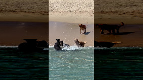 Playful Dogs Interact With a Sea Lion on the Beach