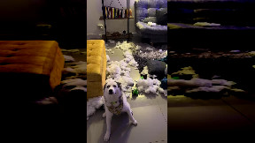 Dog Makes a Soapy Mess After Chewing Up Package