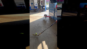 Bonnie Holds Water Hose So Simba Can Have a Good Drink