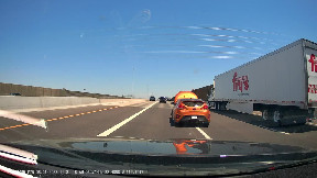 Car Drives on Freeway With Its Hood Up