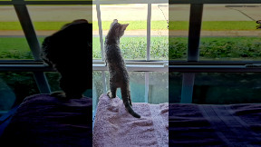 Info from Licensor: "My daughter was playing VR and our cat wanted the string hanging from the hand held devices. He kept swiping at them. He jumped in the table and was watching and grabbing at the string. He got a little surprise instead of the string."