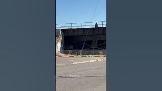 Info from Licensor: "Saw the treetop moving. Thought it was just wind at first. When it went down (fast), I saw the guardrail coming up [those ends should really be buried!] and knew I had to keep the tires on the road so as not to hit it. I saw the tree didn't quite go all the way across, so I hit the top of tree as opposed to taking the median. Passenger had to roll down the window and remove large clump of leaves wrapped around the side mirror. Tacoma emerged relatively unscathed."