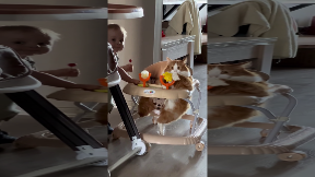 Orange Cat Chills in Baby Walker
