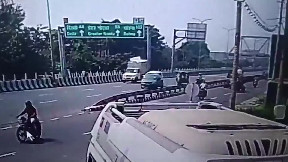 Deer Jumps From Bridge Onto Interstate