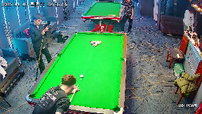 Occurred on June 12, 2025 / Campo Grande, Mato Grosso do Sul, Brazil Info from Licensor: "Man kicking the pool ball inside the table by hitting the eight ball with his feet."