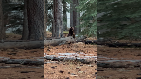 Cub Rides Piggyback on Mama Bear