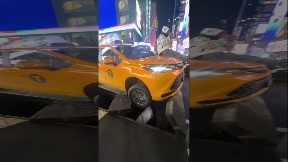Taxi Falls Through Service Grate in Times Square, New York